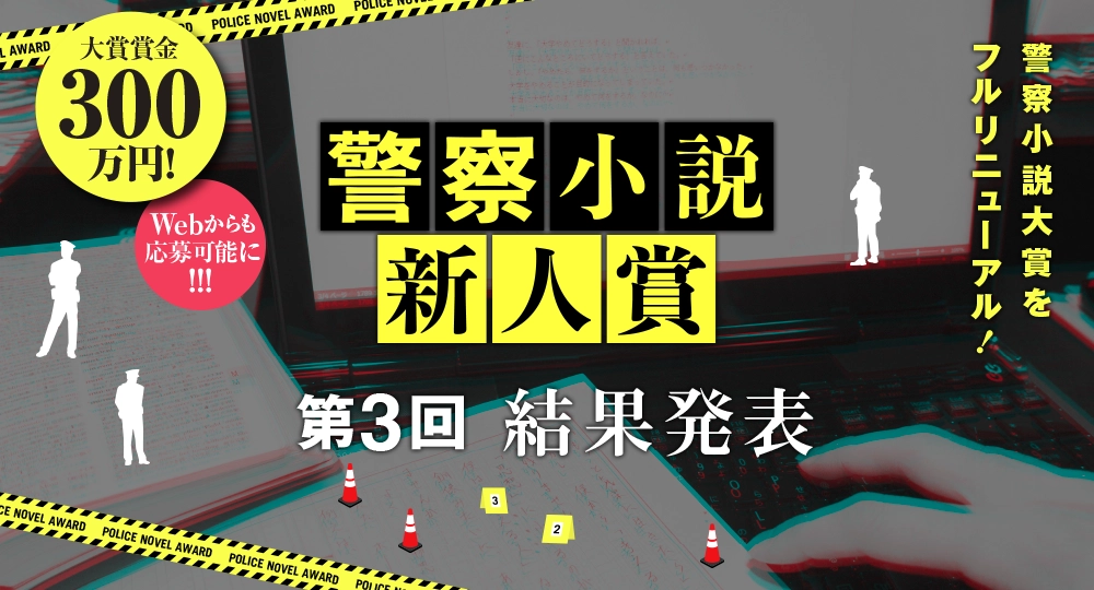 第3回警察小説新人賞は、2024年6月27日(木)に行われてた選考会にて、選考委員の今野敏氏、相場英雄氏、月村了衛氏、長岡弘樹氏、東山彰良氏による厳正な選考の結果、下記のように決定いたしました。